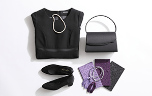 光沢のないサテン地などの布地が好ましく、革製品の場合はスムースレザーを選びます。クロコなどの型押しやパイソン柄など、殺生を連想させるようなレザー製品は避けます。これはフェイクレザーの場合も同様です。